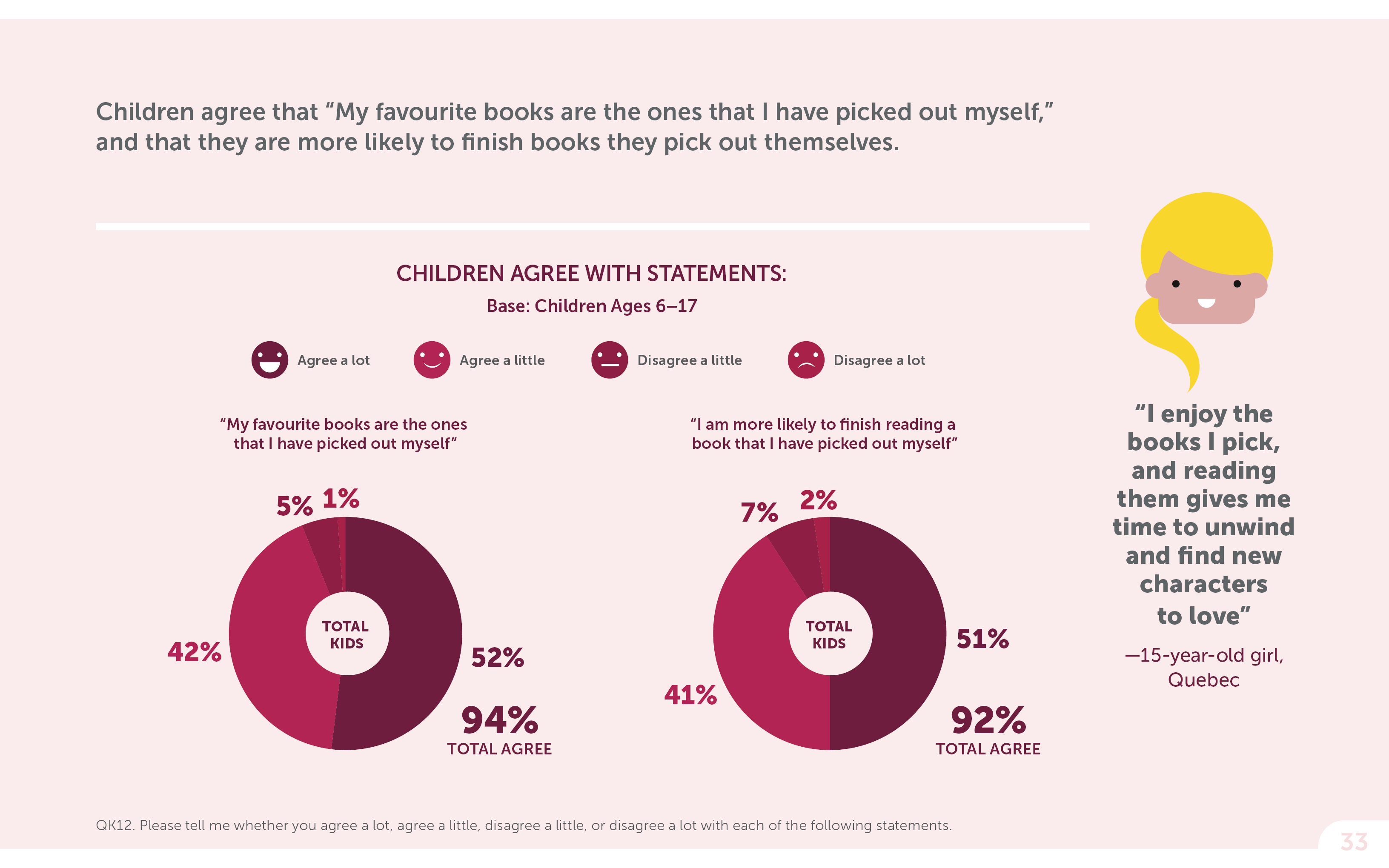 Choice Rules: 94% of kids ages 6-17 agree that their favourite books are the ones that they've picked out themselves.