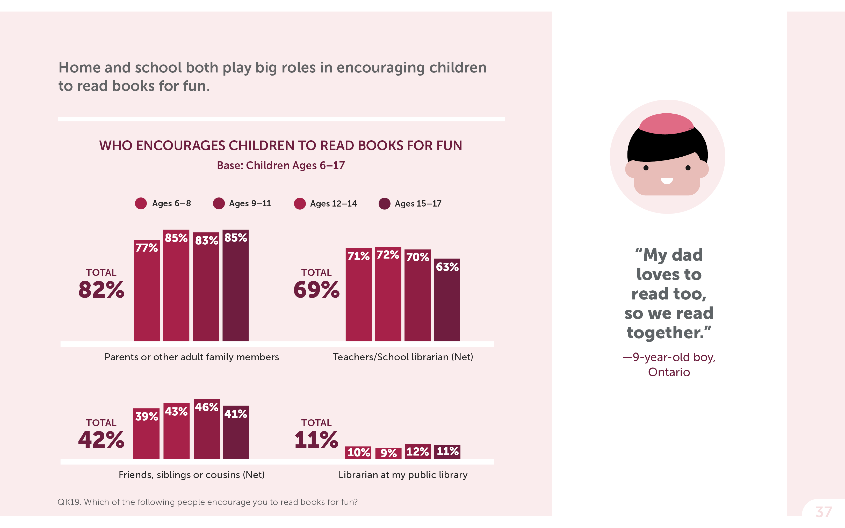 Children of ages 6-17 were asked to identify which people in their lives ecourage them to read books for fun.