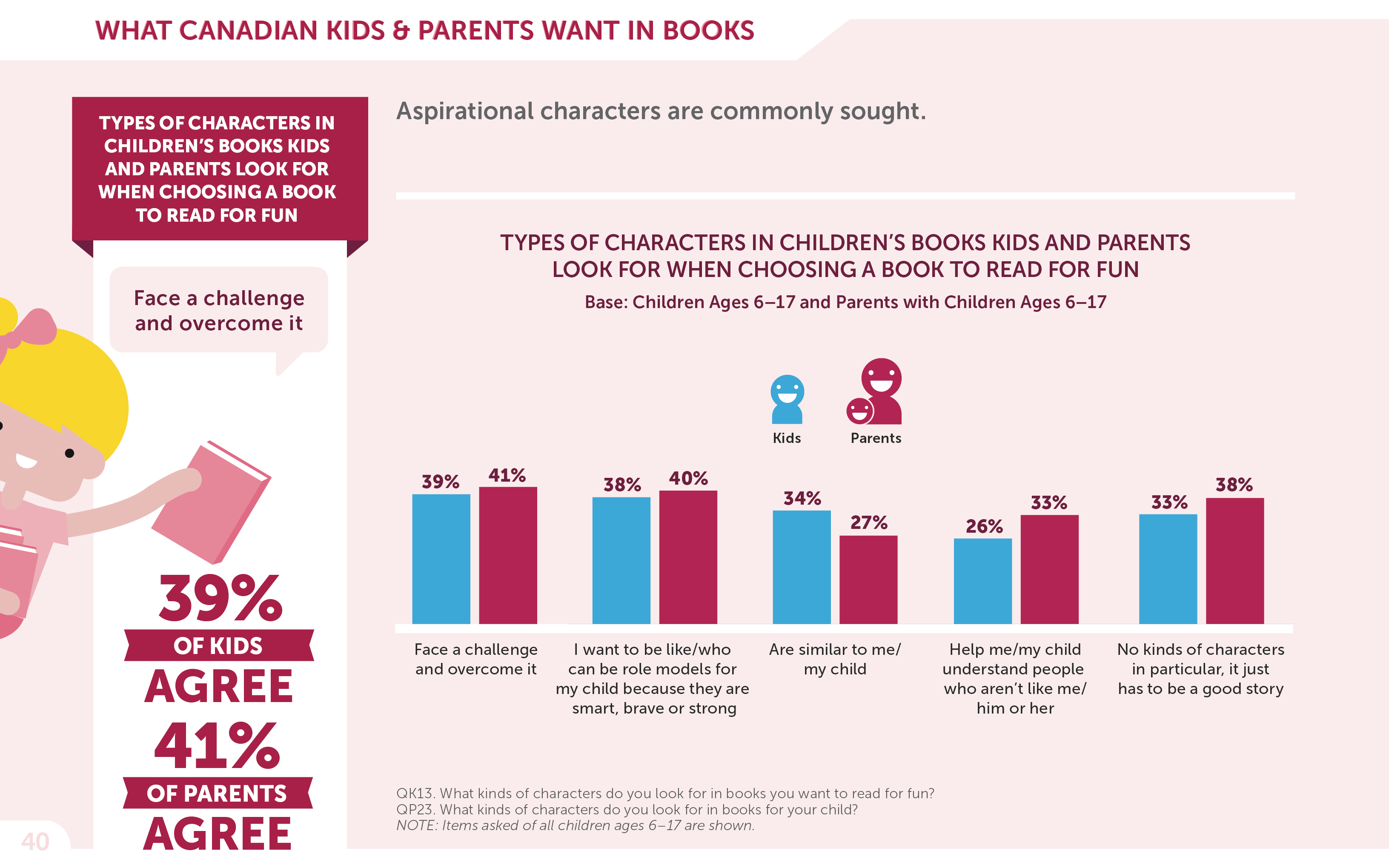 39% of kids and 41% of parents said they look for characters that face a challenge and overcome it.