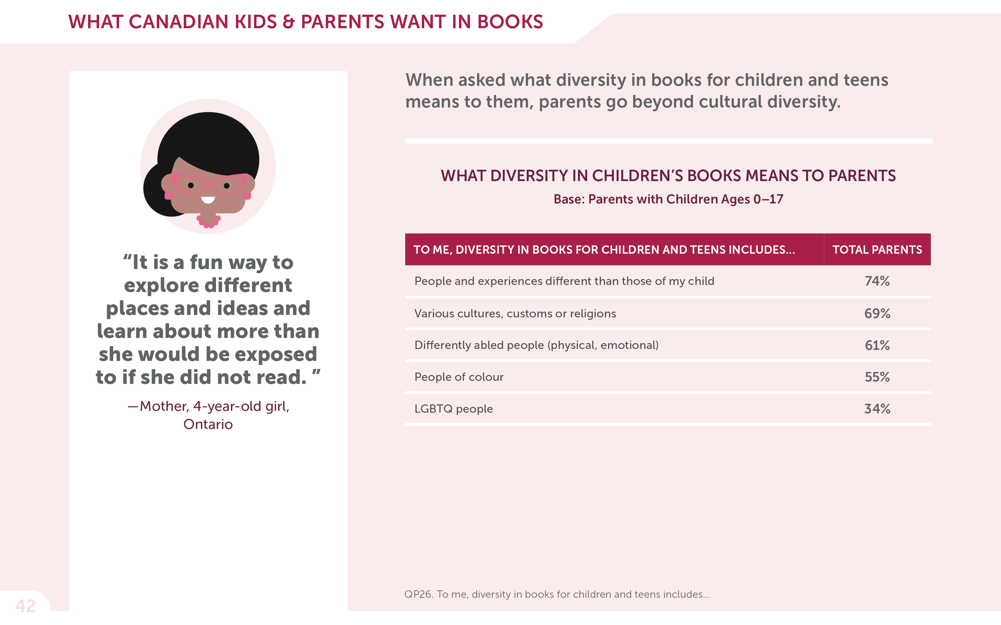 When asked what diversity in books for children and teens means to them, parents go beyond cultural diversity.